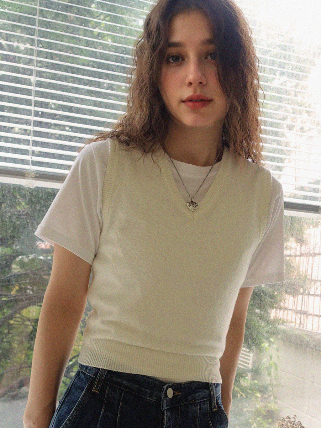 Essential V-Neck Knit Vest - Ivory