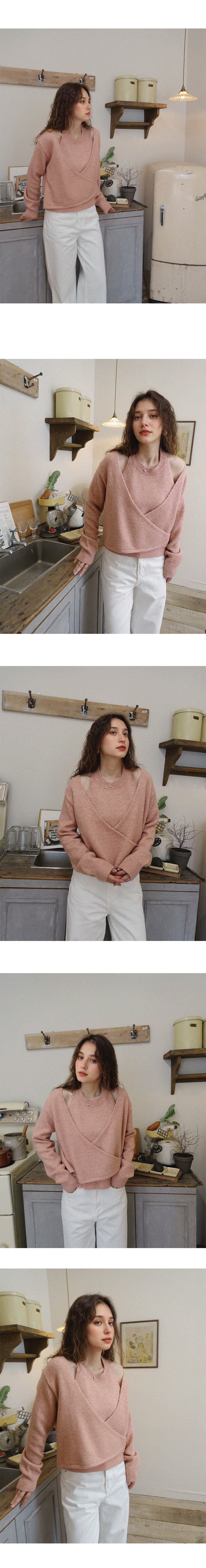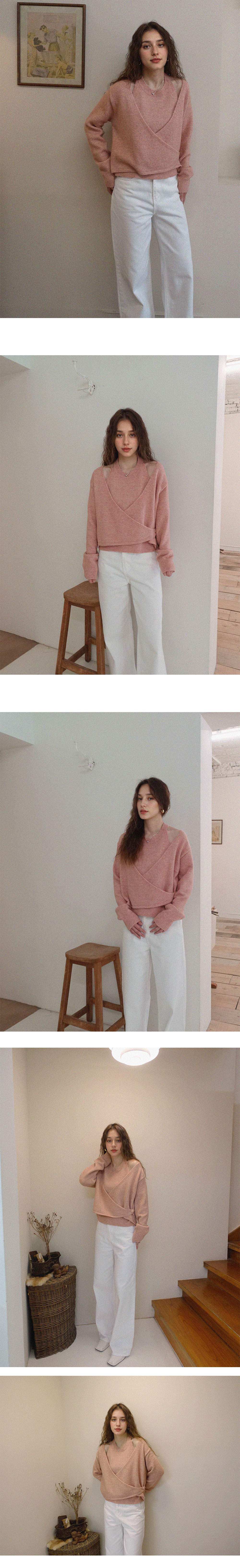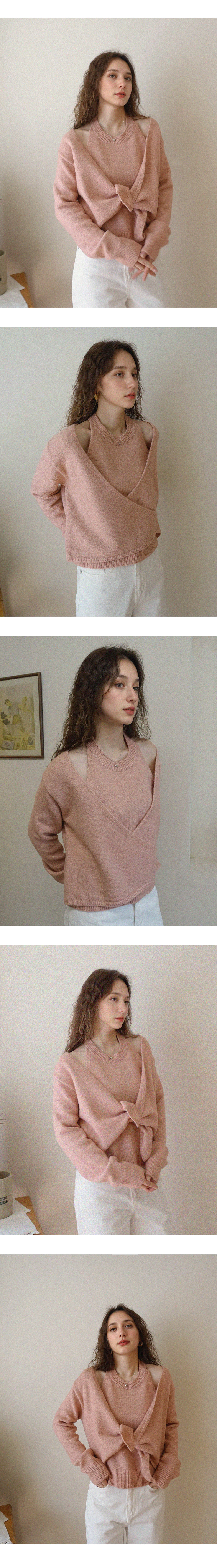 Rosy Halterneck Wrap Knit Top - Pink